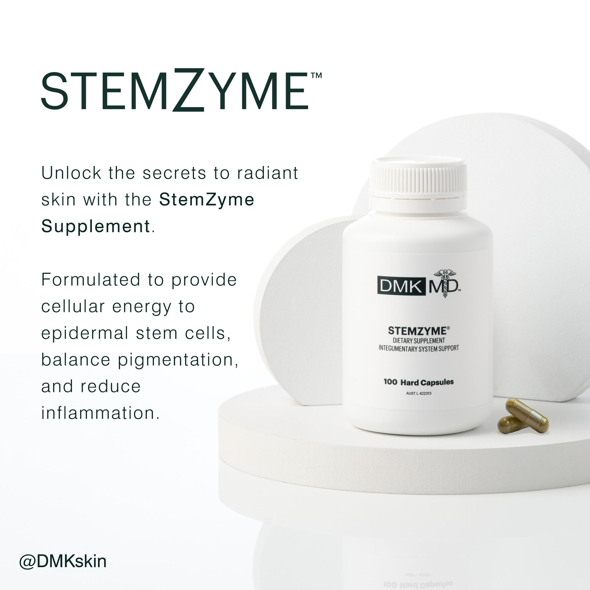 Explore the science-backed benefits of the StemZyme Dietary Supplement, a precise blend of potent botanical extracts. When combined with DMK Skin Revision Treatments, this supplement becomes a key player in skin rejuvenation – supporting collagen production, nurturing new epidermal stem cells, and delivering a range of practical advantages.